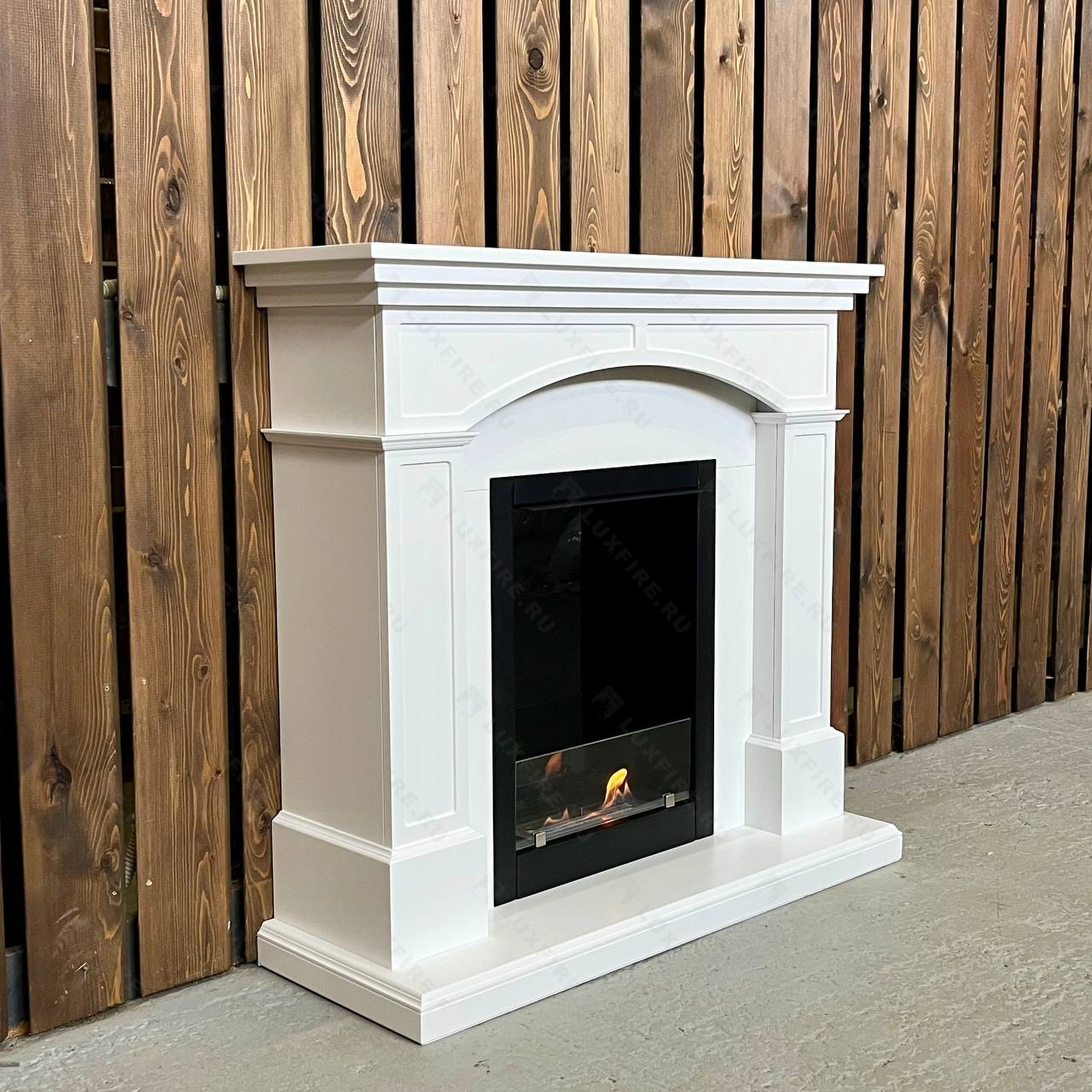 Представляет собой сборную окрашенную конструкцию из МДФ c портальным биокамином Lux Fire "Фаер Бокс 1-24"