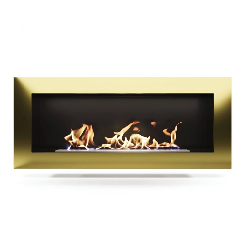 Биокамин золотого цвета, который прекрасно подойдет как встраиваемый вариант для украшения вашего дома.