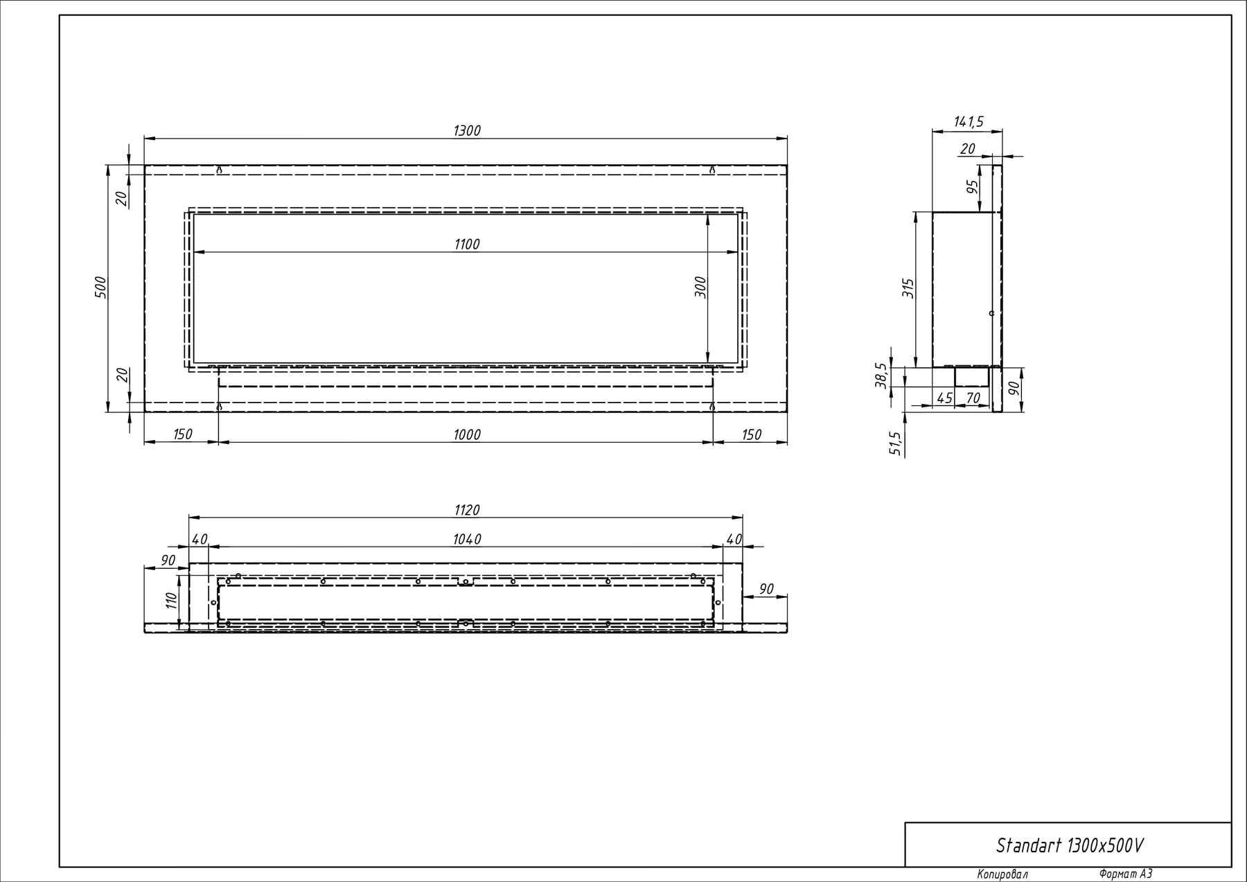 Встраиваемый биокамин «Лофт 1300V» изготовлен из стали и нержавеющей стали, окрашен термостойкой порошковой краской.