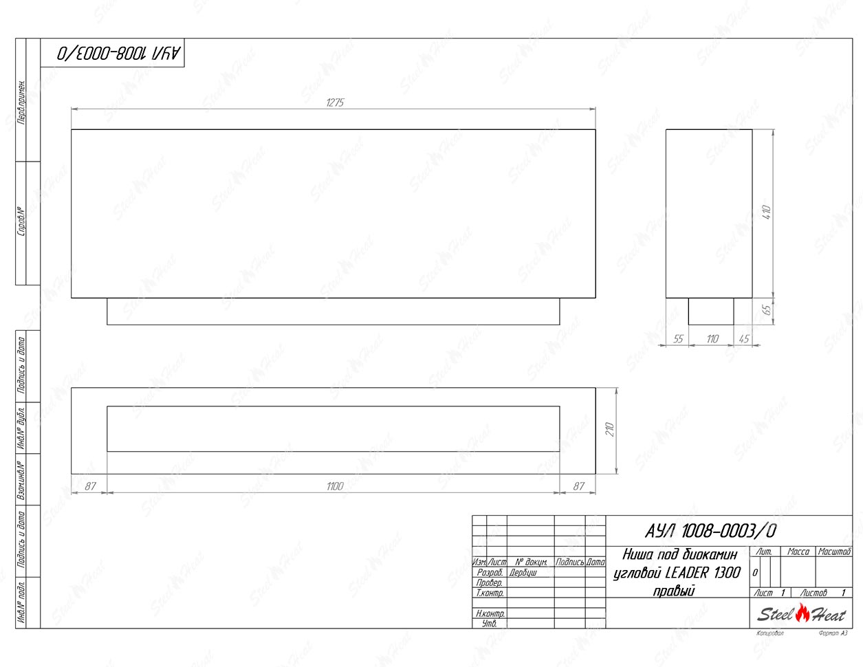 Встраиваемый Биокамин угловой SteelHeat Leader 1300 правыйпредназначен для встраивания в глухие ниши из гипсокартона, кирпича, пеноблоков, бетона.