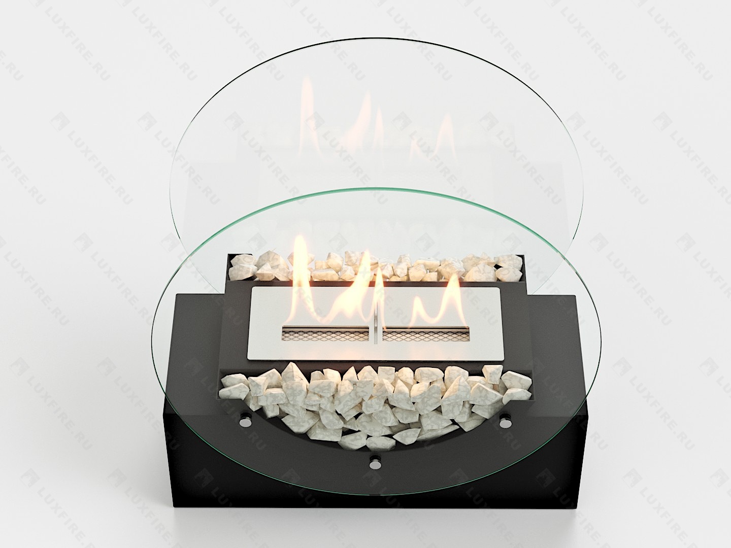 Представляет собой металлическую конструкцию с круглыми стеклами на подставке с топливным блоком Lux Fire 300 М. Оригинальный дизайн.