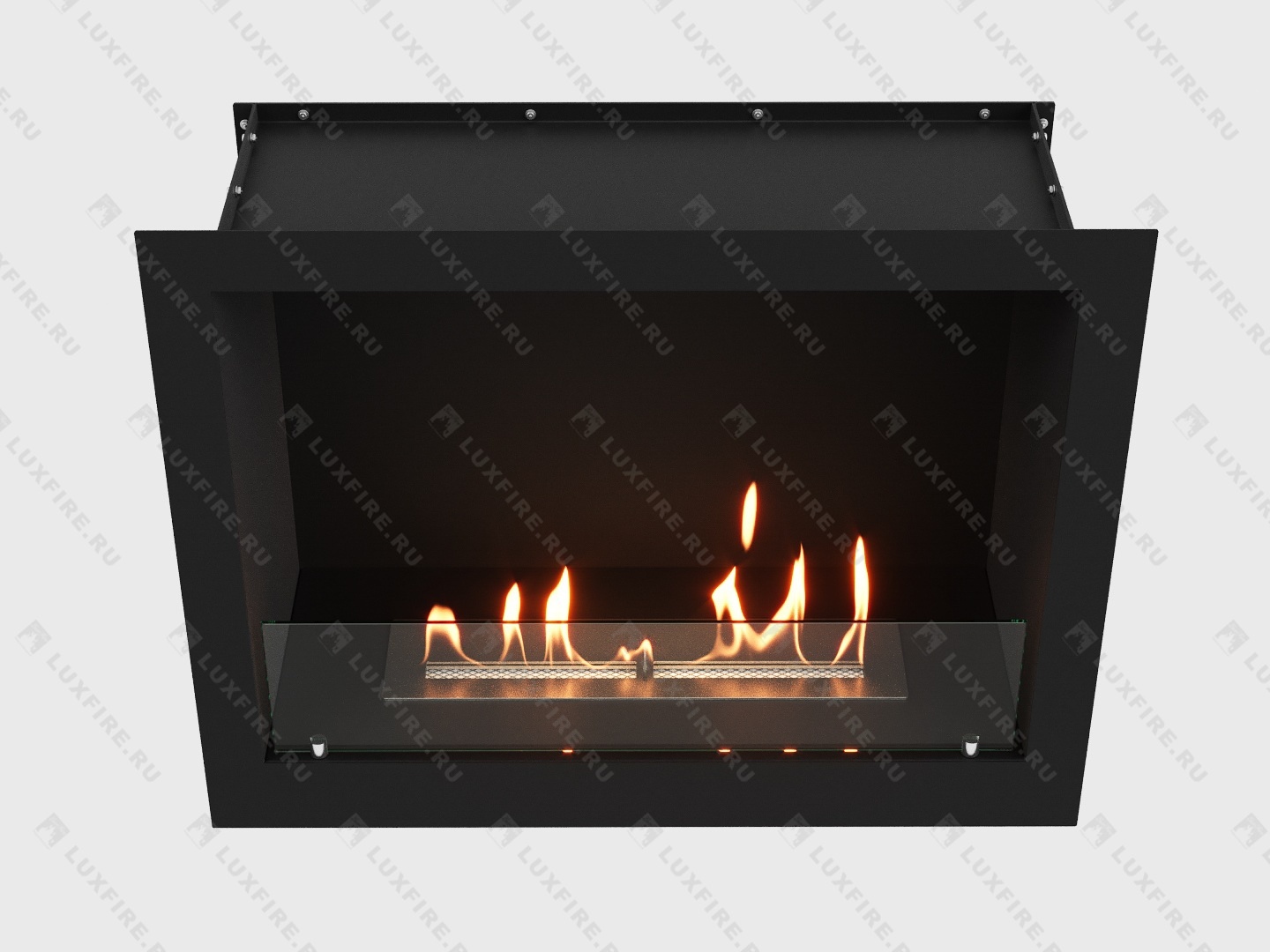 Представляет собой сборную металлическую конструкцию класса М, создающую полузакрытое безопасное пространство для огня с топливным блоком Lux Fire 500М ограниченную закаленным стеклом в котором горит живой огонь с углом обзора 180 градусов .