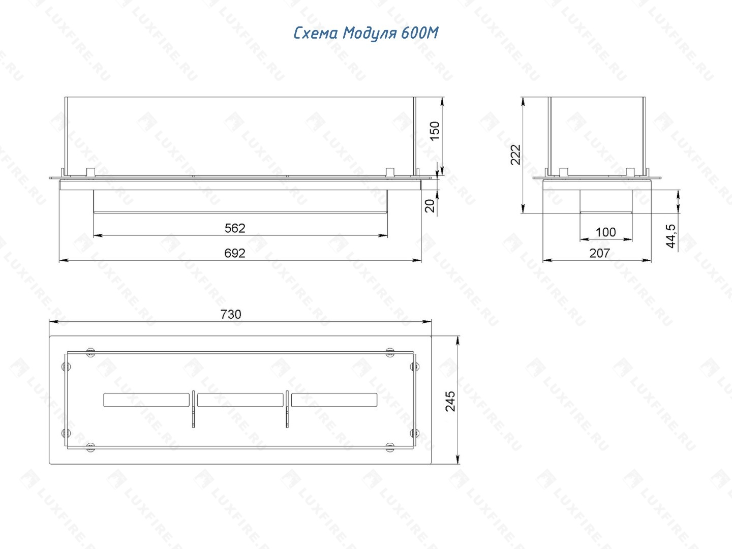Встроенный биокамин Lux Fire Модуль 600 (2020)