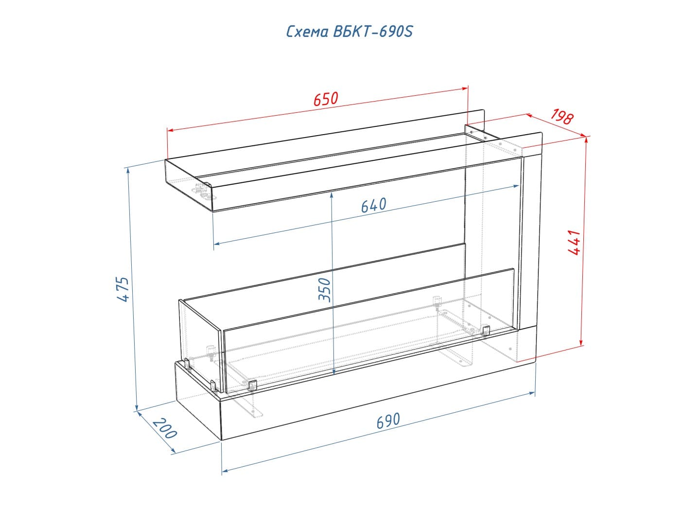 Описание встраиваемого торцевого биокамина Lux Fire Торцевой 690 S