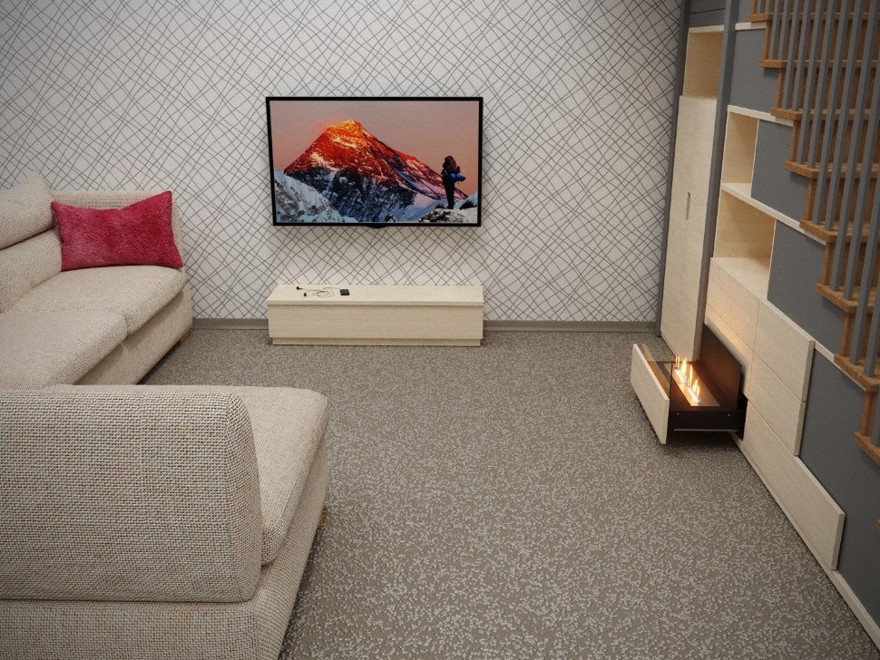 Представляет собой сборную выдвижную металлическую конструкцию (внешний корпус + механизм трансформации и выдвижной элемент с топливным блоком ), способную создать полуоткрытое безопасное пространство для огня ограниченную складывающимся защитным экраном (закаленным стеклом) и металлическим отражателем.Предназначен для встраивания в межкомнатные перегородки из ГКЛ, мебель из МДФ, ЛДСП, конструкций из кирпича, пеноблоков, бетона.