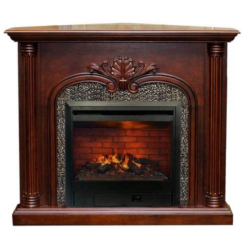 Очаг, встроенный в портал, отличается классическим для широкоформатных очагов дизайном. В верхней его части сформирована имитация вентиляционной решетки, через которую подается теплый воздух. Внутренняя поверхность очага оформлена под кирпич, что отлично вписывается в классический дизайн изделия. Внутрь очага вставлен Муляж дров, отличающийся очень высокой реалистичностью. Особенно это проявляется при включенной подсветке – Муляж дров и угли начинают буквально мерцать.