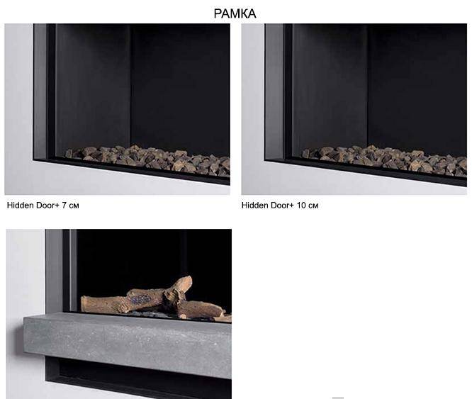 Рамка "Hidden door" + 10 см - стекло камина декорировано тонировкой по периметру и укомплектовано монтажной рамкой шириной 10 см. Это придаёт камину современный дизайн и облегчает монтаж камина.