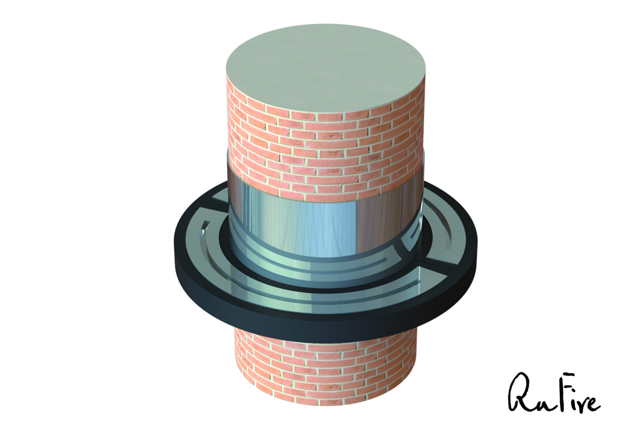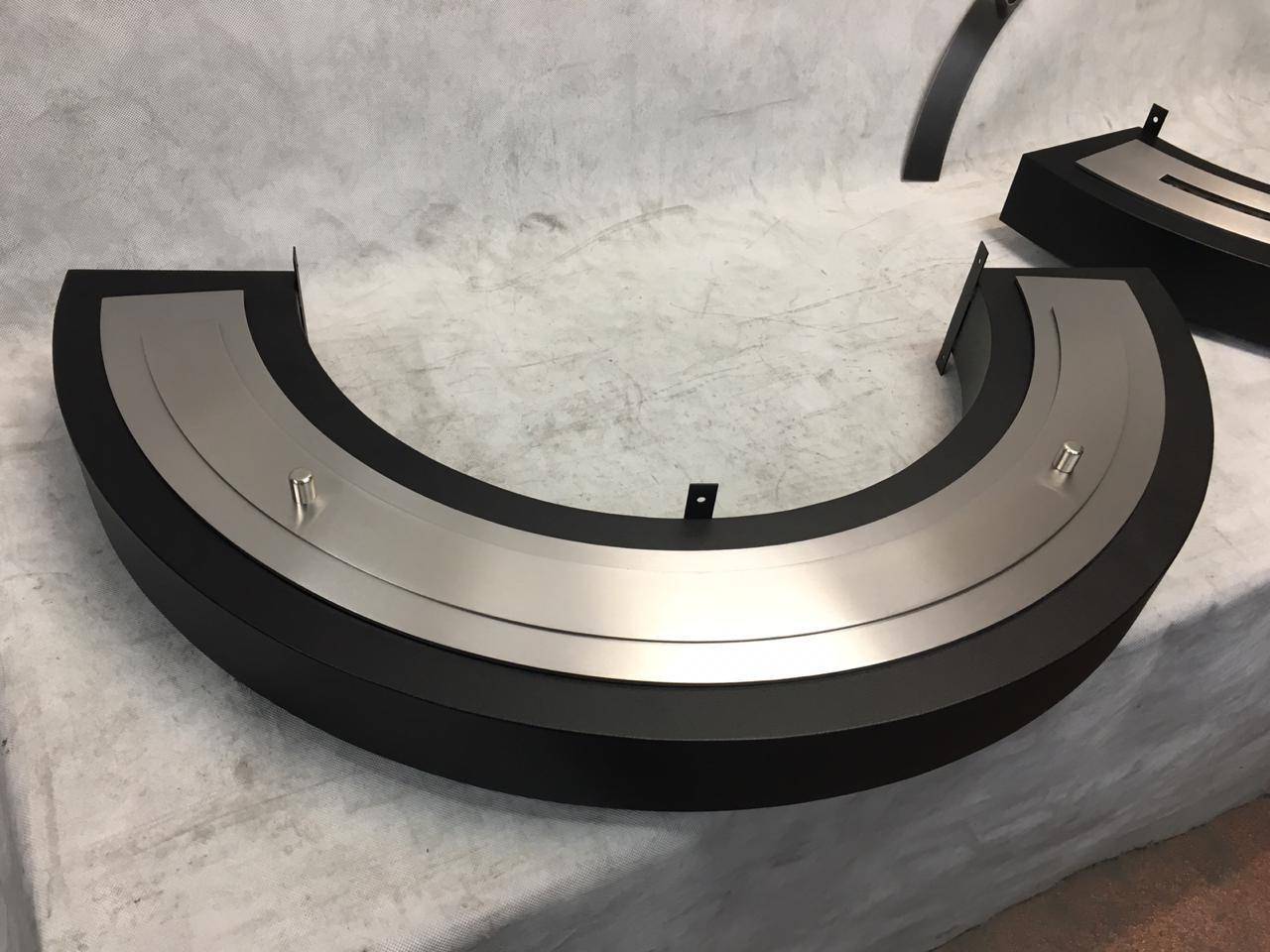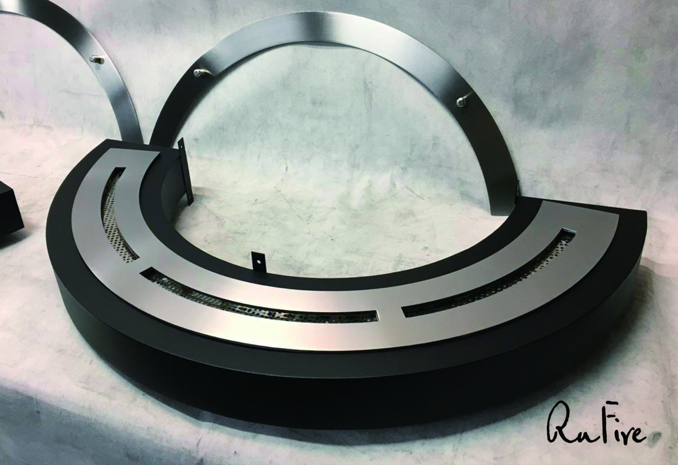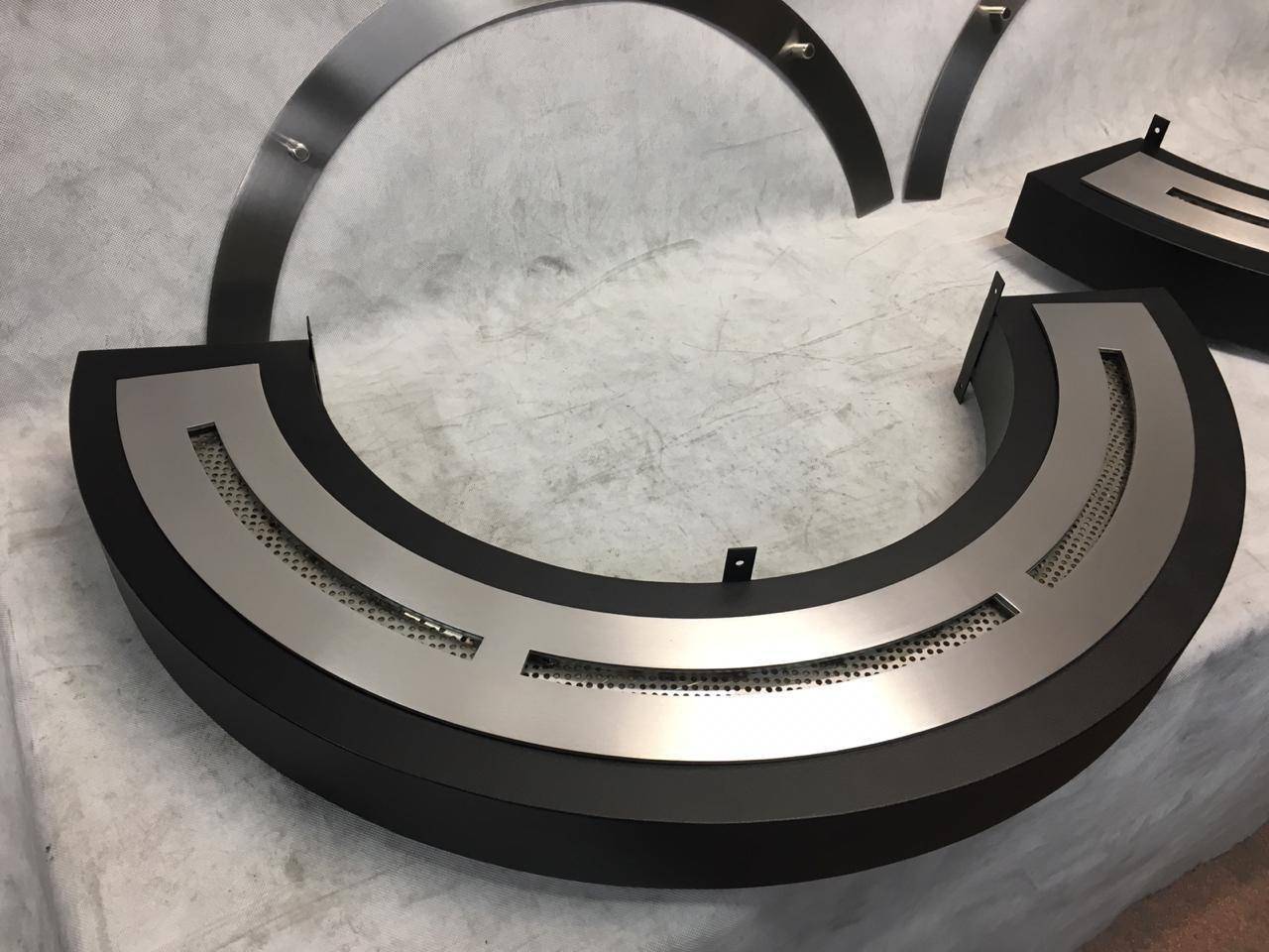 По проекту дизайнера, камин должен быть установлен вокруг колонны. Был разработан проект. В соответствии с которым изготовлен биокамин состоящий из двух корпусов и закругленных топливных блоков. Также изготовлено закругленное защитное термостойкое стекло. Колонна отделана зеркальной нержавеющей сталью.